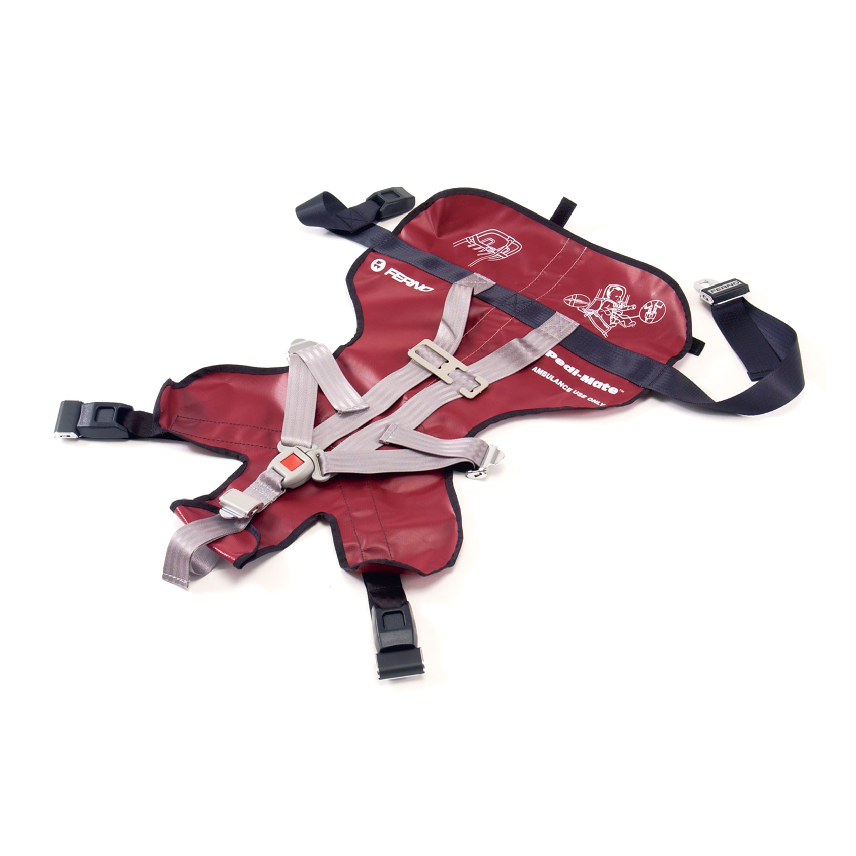 The Pedi Mate Pediatric Restraint System quickly adapts any ambulance cot for the safe transport of children ranging in size from 10-40 lb (4.5-18 kg).